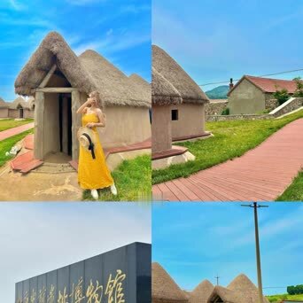 机位:6500年前史前村落,小房子像一个个的小蒙古包,草地木板路都超级适合拍全身